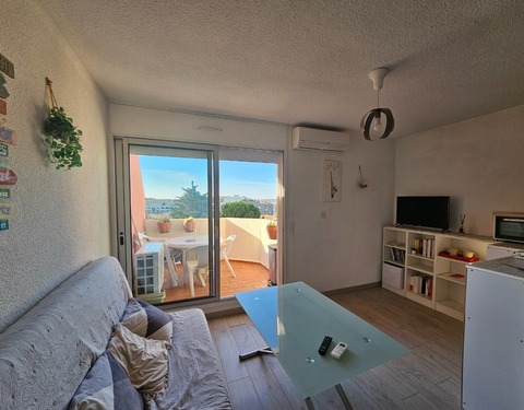 Villeroy Immobilier vous propose à Sète en exclusivité, au port de plaisance des Quilles, à 5mn à pied de la plage et de la promenade du Lido. Très joli appartement de type 2 d'une surface habitable de 27,91 m² rénové avec beaucoup de goût et de soin. Situé au premier étage d'une résidence conviviale et familiale (sans ascenseur), son atout principal est sa loggia expo plein Sud de 4,53 m² sans vis à vis et qui bénéficie d'une belle vue...